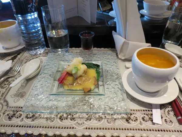 [南瓜海皇羹] 想拍一張桌面照 就忘了拍湯品了 除了擺盤好美之外