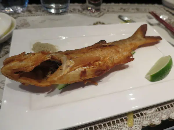 [香煎午仔魚] 乾煎的小海魚 配上檸檬和胡椒塩 肉質很細 魚肉也不少 慢慢的吃 更有味道