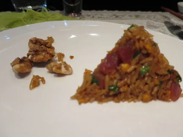 炒飯不算特別 而且給的火腿肉密度也超高 旁邊則是附少許的核桃