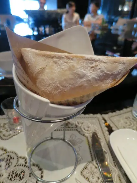 裡面是地獄來的美食─起士餡 餅皮偏硬但好嚼 灑上豪邁的糖霜 真難抗拒啊