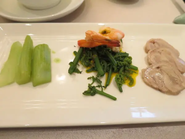 [迎賓三拼盤] 右邊是川辣油雞 但其實辣的比重不高 吃不出來 但油雞的滑嫩感有的