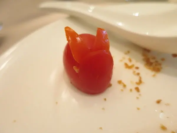 哈 可愛的廚師 把配菜的小蕃茄刻成小兔子的樣子 好可愛喔長耳朵了