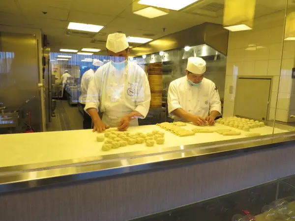 長廊的盡頭就是透明玻璃的廚房 可以看到廚師們在做中式包點喔
