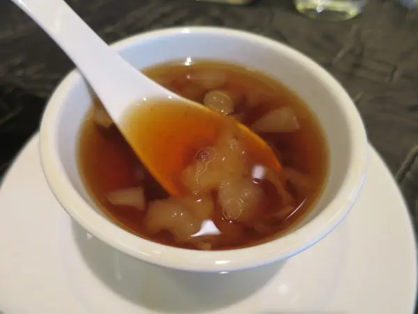 [雞絲竹笙燴燕窩] 第一道主菜就先上湯品 燕窩這種養顏美容的聖品當然是一定要吃光光