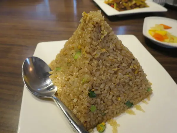 [什錦海鮮&飛魚卵炒飯227元] 堆的金字塔的形狀 本來以為份量會小小的 但其實蠻算蠻多的