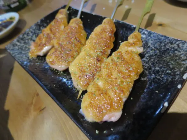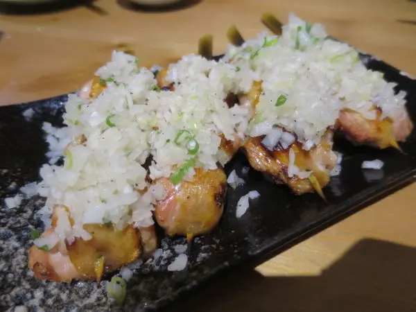 [明太子雞肉串 120元/2串 此為兩份] 自從在永康街的吳留手吃到明太子雞肉串後 就一直念念不望