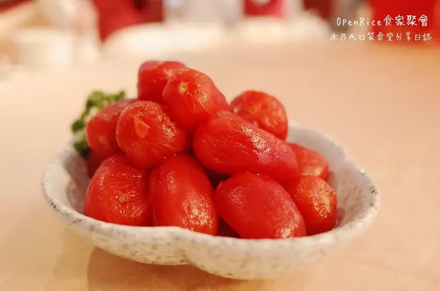開胃小菜是吃起來冰涼的梅漬番茄。