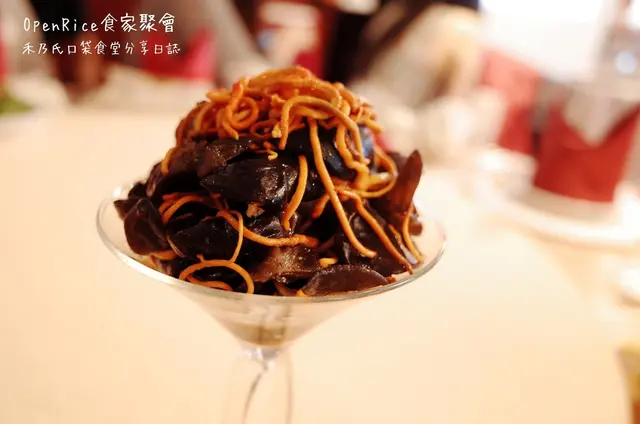 這道開胃菜引起了小小的討論,上頭與黑木耳拌在一起黃色條狀的食料看似中藥食材,整體有點微酸的口感我蠻喜歡的。