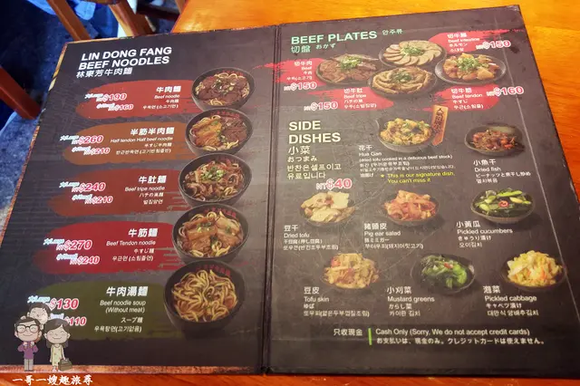 牛肉麵(大)NT.190+牛肉湯麵(小)NT.110。