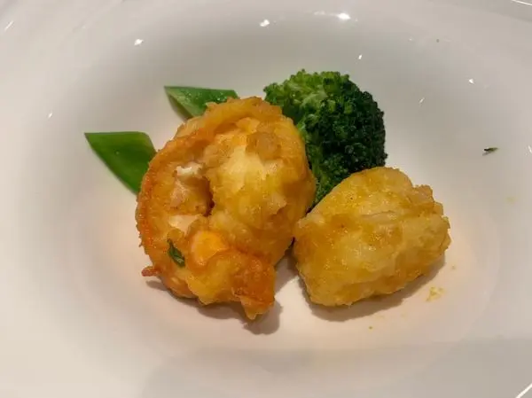[黃金鮮蝦貝] 用酥炸的方式處理一隻大干貝和鮮蝦 不過並沒有被炸得太乾
