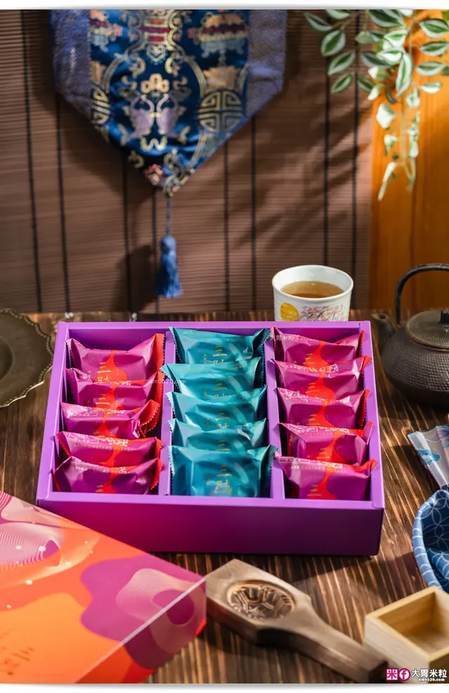 第一款是三統漢菓子「2022中秋餡禮」流心三重奏禮盒,裡面可以嚐到抹茶柚子流心酥5入x鳳凰流心酥5入組合,紫色內盒搭配莫蘭迪藍包裝,充滿輕奢質感!