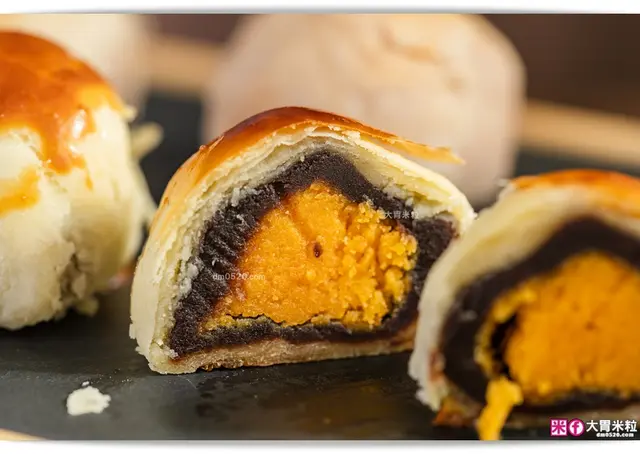 加上日本冠軍麵粉外皮與屏東紅心鹹蛋黃,整個餡料厚度五公分,一點都不誇張!