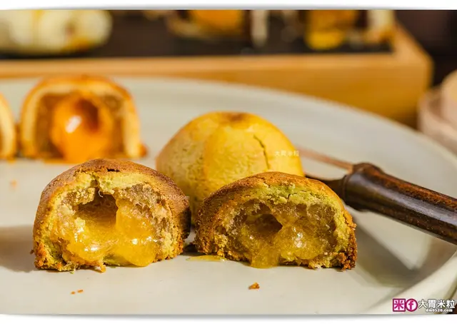 最後則是中秋限定口味「三統抹茶柚子流心酥」金黃外皮加入京都宇治抹茶粉,中間內餡則是土鳳梨餡搭配韓國黃金柚子醬,吃得到柚子果肉,特別應景中秋節!