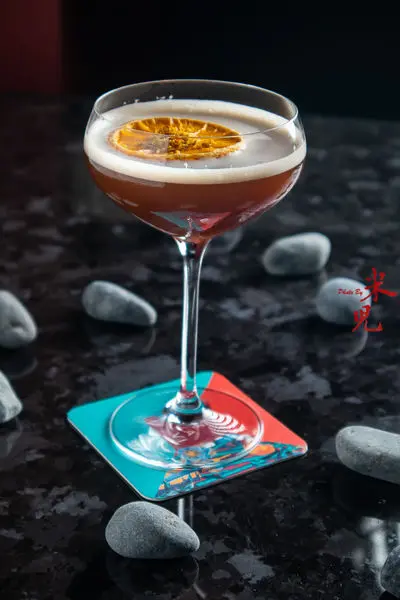 這杯調酒名為梅飛鳯舞。是用噶瑪蘭威士忌加上梅子利口酒、白酒和鳯梨汁調成的,味道酸甜而且不太冰,所以我多喝了幾口,很梅酒的風味,會是女生很喜歡的酒款。