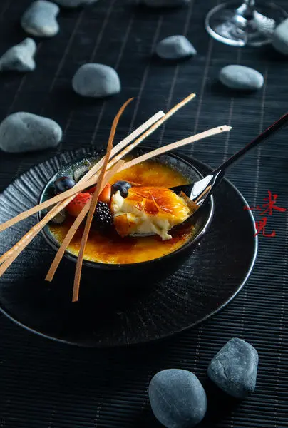 雙層烤布蕾。在香草布蕾裡面,埋伏著百香果泥和番石榴凍,所以吃的時候要一整個挖到底才能吃到整個不同的風味,這個甜點算是做出了脆皮布蕾的新高度啊~~好在我拍完照時先把湯匙內那口給吃了~~否則我一回神應該又吃不到了吧~~~