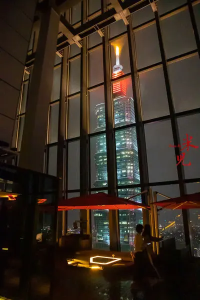 紅傘下的是夜裡會發光的嵌入式露天包廂,大片落地玻璃外就是101大樓,如此景緻,可想見跨年夜這裡會有多熱門~~