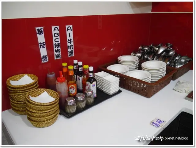 除了主餐以外,其它都是採取自助式,走到店內的最深處,沙拉吧、飲料、調味料、牛排沾醬、冰淇淋一應俱全。