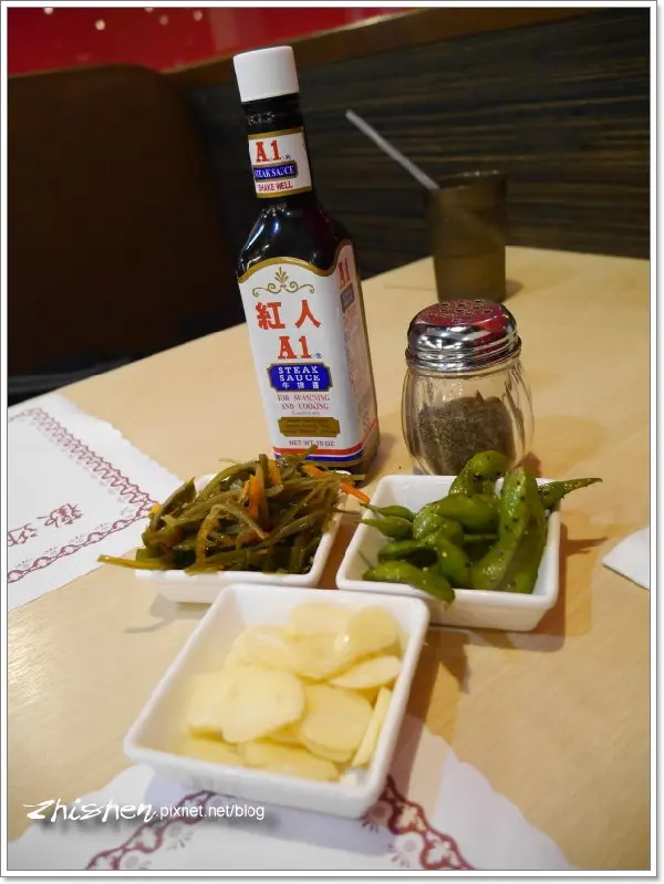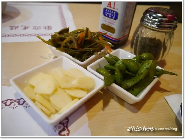 沙拉吧選了涼拌海帶和毛豆,味道可沒有因為這裏是牛排館就隨便,口感、味道都不差。至於A1和蒜片,對我來說也是另外加分。