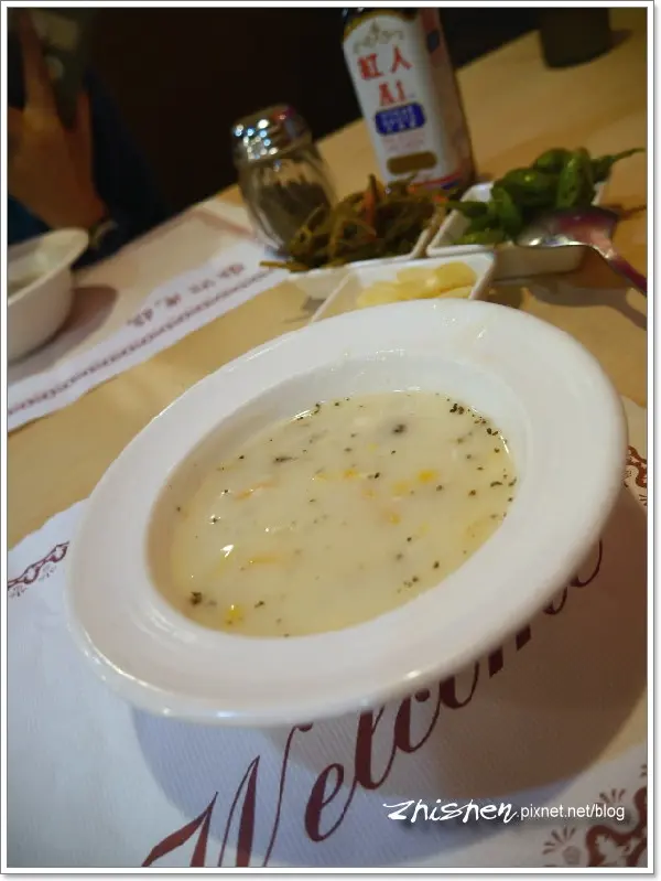 一般牛排館都有的玉米濃湯,這裏的版本則是有玉米顆粒,也不至於粉感太重,至少是不膩。