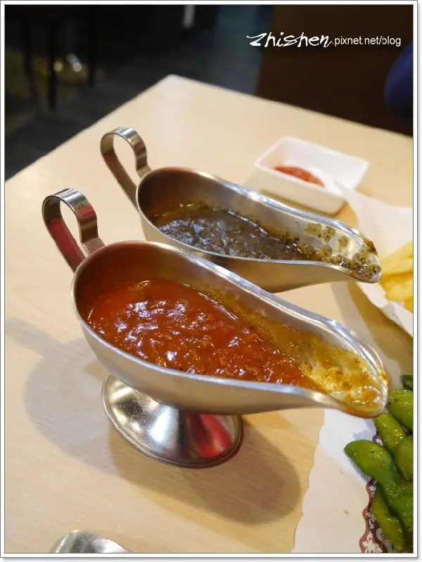 牛排專用的紅醬、黑胡椒醬料以味道來說也不算差,不會只是粉,香氣有,味亦足。