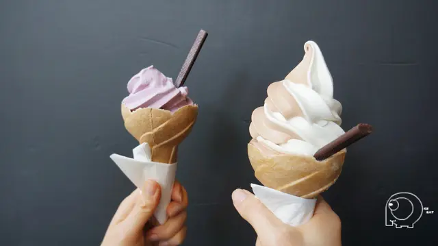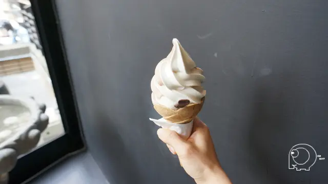 因為綜合野莓先來所以已經先吃好幾口了,因為我不敢吃奶味太重的冰淇淋,綜合野莓雖然有點奶味但還能接受,不過味道是偏淡一點,吃不太出來野莓的味道,我跟美姬一致認為普普而已,至於豆乳加巧克力表現就好很多,吃的到濃濃的豆漿味配上巧克力不錯吃,吃不出奶味這個我愛哈哈,美姬吃完有點失望,畢竟一支80不是很便宜,美姬說他還是想吃他最愛的芝麻跟抹茶。