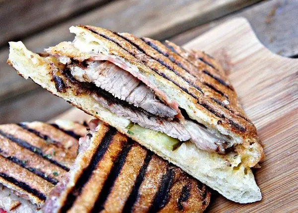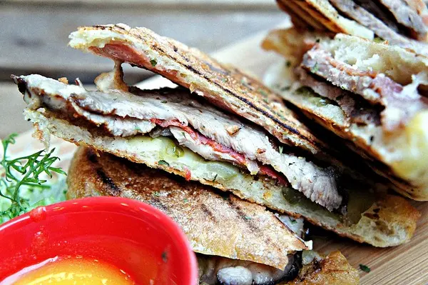 古巴三明治 是早期古巴移工的午餐便當 跟帕尼尼長得相似 差別在於前者裡面是不放醬的!!! 不僅吃起來口感薄脆不乾澀 ~