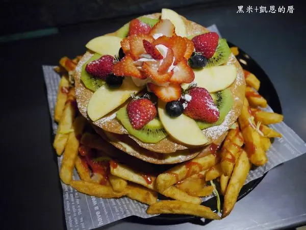盤子周圍鋪滿薯條,薯條很酥脆不會有油膩感