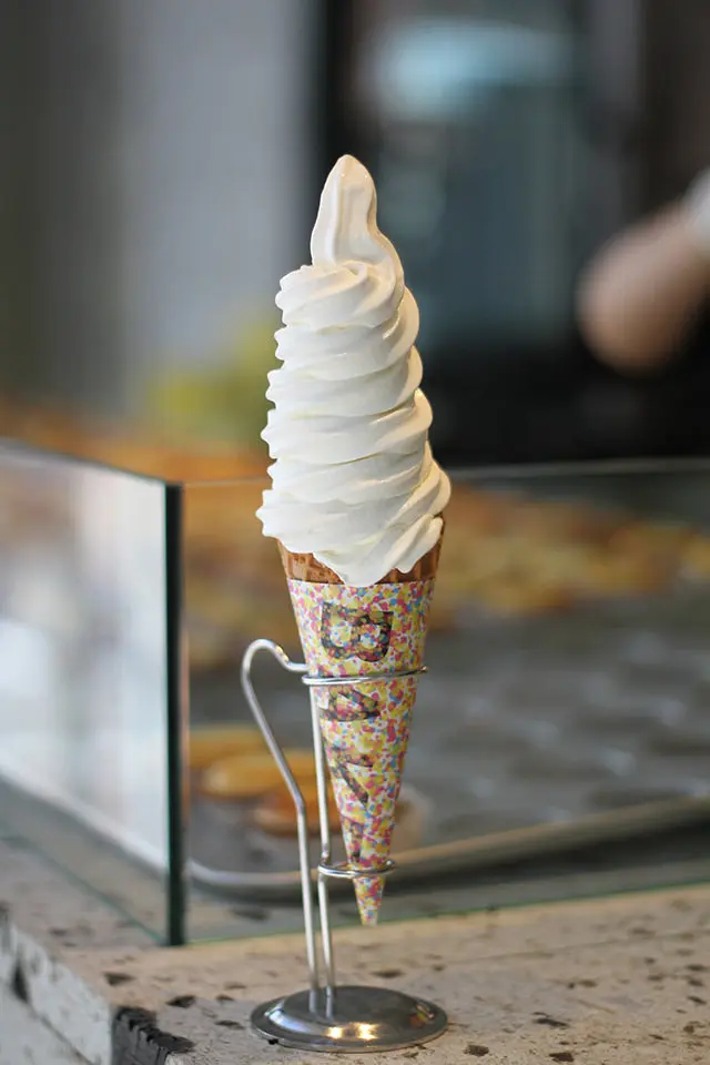 除了起士塔以外,也有販售使用日本北海道原料製作的極上牛乳霜淇淋,一支售價$120元,可選擇甜筒或是杯裝。