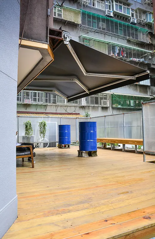 牆上掛著腐鏽的鐵板,整體有些許粗曠及神秘的氛圍。