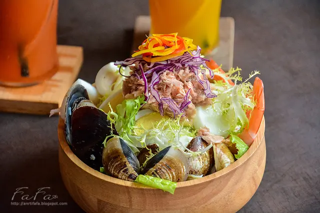 看起來滿滿的料,但其實裝在大約一人份的木碗盆裡所以外觀看似較豐盛,