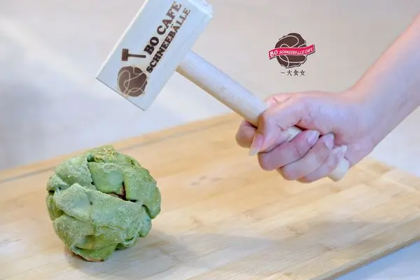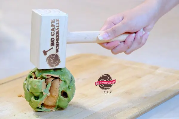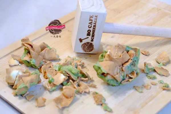 但隨著木槌將雪球敲開的瞬間,壓力也似乎被各個擊破了!再將碎成片的餅乾入口,甜意也隨之在心裡化了開來