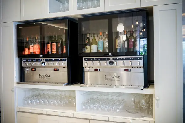 特別之處還有這裡,喝酒自取的意思嗎? 酒櫃裡是店家推薦酒類,酒杯在下方,喜歡喝什麼味道與產地的酒,可以諮詢店家後,非常棒的設計。