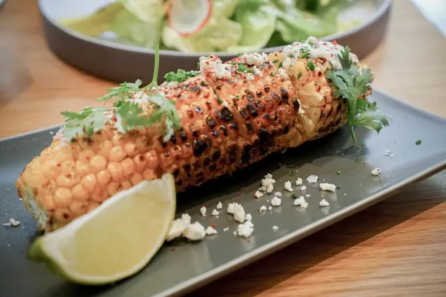 用墨西哥辣椒奶油塗抹下去反覆燒烤,本身就有帶點辣度,在配上萊姆酸奶醬,且玉米好甜好甜,這一根玉米我個人非常喜歡。