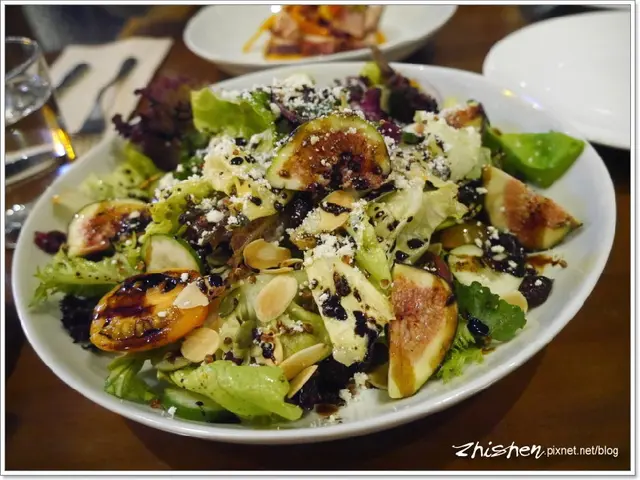 沙拉最大亮點莫過於新鮮的無花果,而且給得還頗為誠意。加上紅黎麥、櫻桃、蔓越莓、可仁、南瓜子等各式蔬果,高纖健康程度可謂滿點,起司、油醋略為點綴提味,是道風味十分清爽的沙拉。