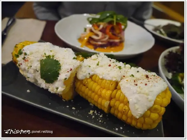 甜玉米應該是有經過蒸或煮的前置,玉米粒的口感很軟,與一般和台式烤玉米經過高溫燒烤後的Q硬完全不同,墨西哥的辣椒奶油奶香濃郁,辣香輕薄淡雅,搭配甜玉米算是有襯到但又不算太搶味。