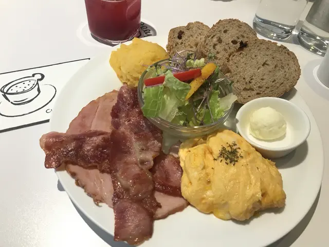 內容物有:火腿、培根、沙拉、炒蛋(或太陽蛋)、薯泥(或薯餅)、歐式麵包(藍莓果醬/奶油)。