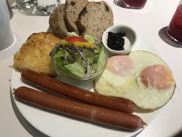 早午餐的內容物都差不多,但還是有可以自行選擇的內容,例如我選了太陽蛋、薯餅及藍莓果醬。