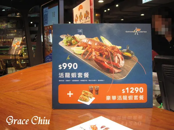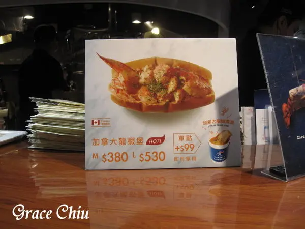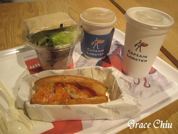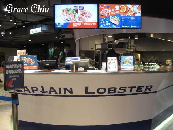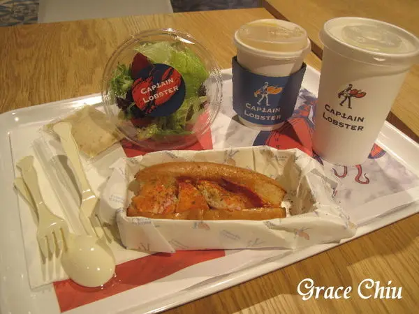 從加拿大進口的波士頓龍蝦強調產地直送的新鮮,除了主打龍蝦堡.龍蝦古巴三明治.龍蝦濃湯等相關餐點外還有販售北海道松葉蟹腳堡.南非深海鱈魚堡.廣島牡蠣堡.薯條.沙拉.飲品等餐點,以美食街來說Captain Lobster的價位算蠻高價的.