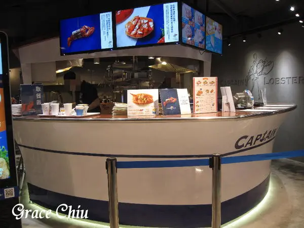 Captain Lobster位於新光三越信義新天地A11館B2美食街,船型吧枱在美食街裡是頗為特別,這造型也正好呼應店家販售的海鮮類餐點.