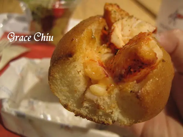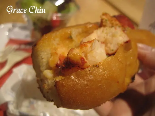 從旁邊可以看到除了厚實龍蝦肉外底下還舖了不少細碎的蝦肉,另外也有淋上特製龍蝦醬,好吃的麵包加上鮮甜的龍蝦肉,咬下的每一口都是新鮮大滿足.