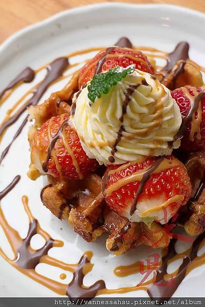 最受歡迎的永遠是香甜的草莓口味鬆餅,搭配特製卡士達醬,香軟迷人。