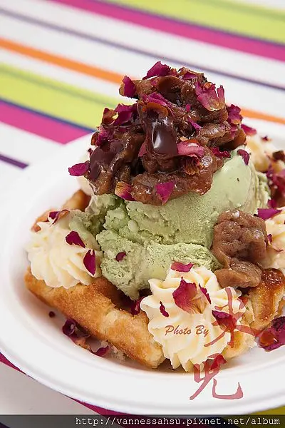 二店新推出的荔枝心玫瑰情,以特製荔枝乾搭配抹茶冰淇淋和玫瑰花瓣,口味超浪漫。