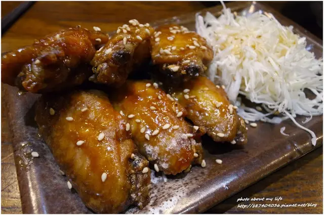 說是炸覺得比較像是烤雞翅 不過表層又不像烤雞翅那麼油香 厚厚的醬汁層又有點像滷雞翅