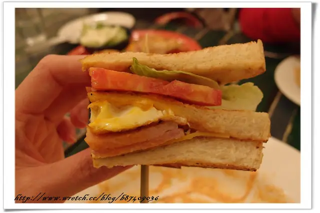 三明治裡有火腿/煎蛋/蕃茄切片和煎蛋