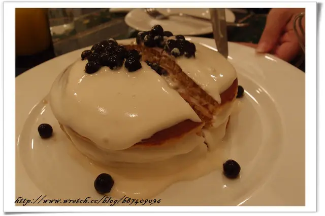 實在忍不下心切開這麼美的鬆餅 只好由朋友代勞嚕