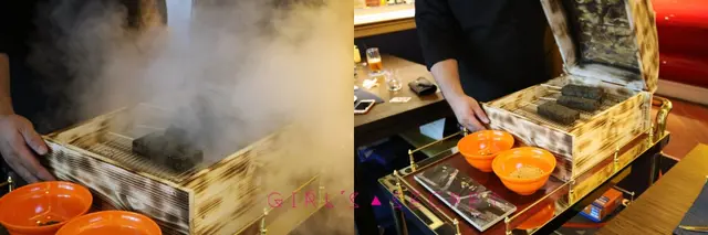 浮誇的桌邊服務,服務生會推出一台像是夜市賣豬血糕攤販的小餐車