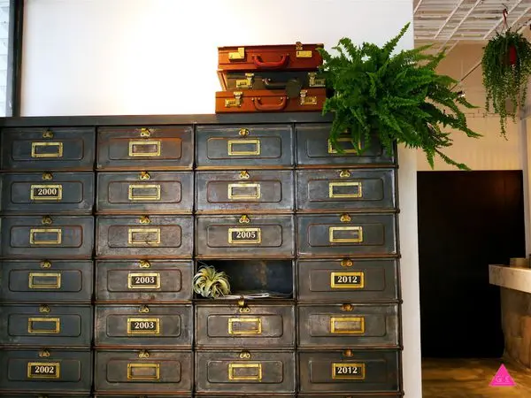店裡面很美的一個角落,整面歐式風格的復古櫃上面點綴著空氣鳳梨和蕨類。