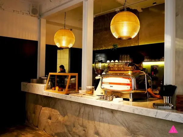 燈籠造型的燈飾很美,吧台下方的牆面材質也很特別,Cafe de Gear 的裝潢和