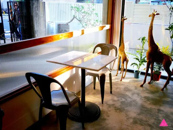 Cafe de Gear 的 傢俱擺飾都十分講究,從一進門的黑色復古大門就很有質感,門口還放著兩隻很可愛的長頸鹿!