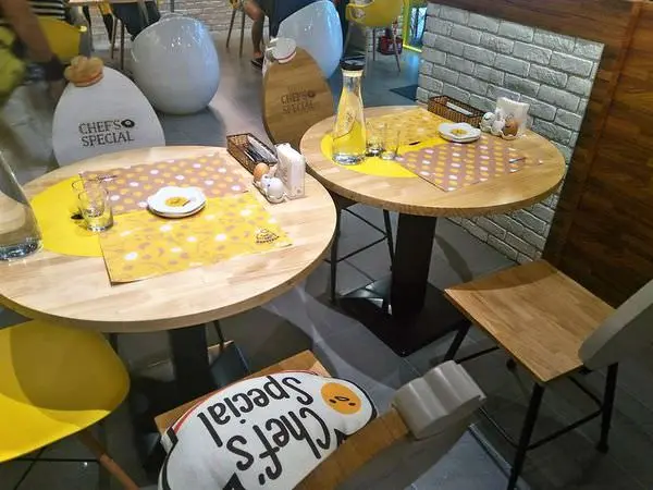 所有的桌椅、抱枕也融入了蛋黃哥的元素。